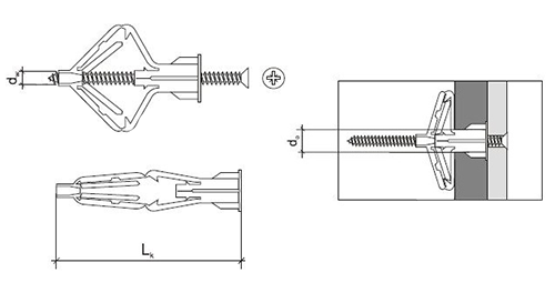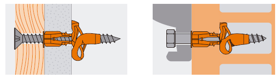 • Крепежи на базе упоров. Анкеры с распорками различных типов. Они обладают высокой несущей способностью, работают с гипсокартоном, фанерой и прочими тонкостенными материалами. Метизы позволяют фиксировать тяжелые конструкции, не разрушая опору.